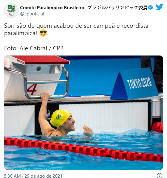 Essa foi a segunda medalha de Gabriel Geraldo em Tóquio. Ele foi o primeiro medalhista do Brasil nesta edição dos Jogos Paralímpicos de Tóquio ao faturar a prata dos 100m costas, na classe S2.