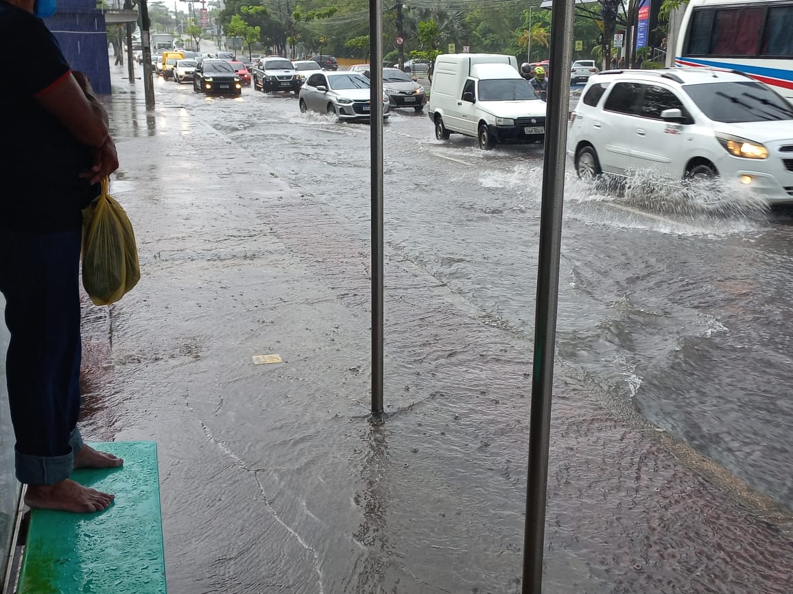 Na avenida Djalma Batista, na zona Centro-Sul, não foi diferente e a alagação tomou conta da pista. O trânsito ficou lento e as pessoas que estavam nas paradas de ônibus tentavam se esconder, ao máximo, para poder não se molhar.