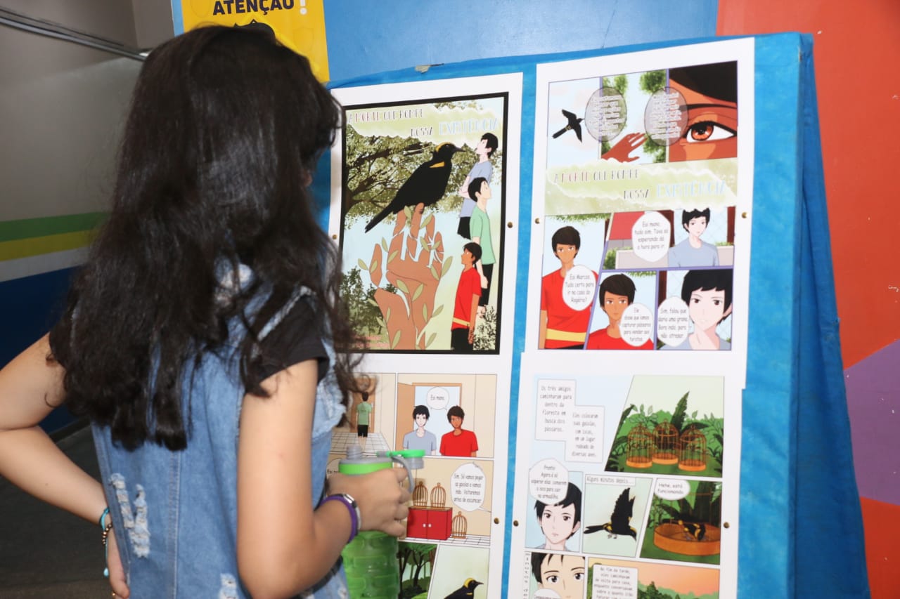 Os alunos desenvolveram projetos literários e artísticos para a exposição, com temas como “Amazônia em quadrinhos”, “HQ na Língua Inglesa”, “Eu indico…” e ” Linguagem visual e movimento da dança”.