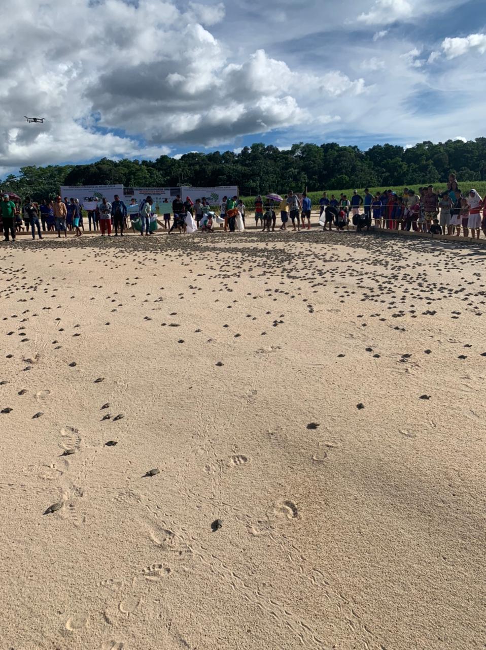 AMAZONAS | No município de Carauari (há 788 quilômetros de Manaus), existe o monitoramento de quelônios que é realizado pela Reserva de Desenvolvimento Sustentável (RDS) Uacari e na Reserva Extrativista (Resex) Médio Juruá. Em meio a isso, houve a soltura de 274 mil filhotes de volta à natureza, neste domingo (14). A ação, promovida pela Secretaria de Estado do Meio Ambiente (Sema), visa garantir o aumento da população de quelônios na região.A soltura contou com a participação de 700 ribeirinhos, moradores de 45 comunidades situadas ao longo do rio Juruá. Na localidade, comunitários realizam o monitoramento dos tabuleiros de quelônios há mais de 30 anos, segundo frisa o assessor técnico da Sema e gestor da RDS Uacari, Gilberto Olavo.