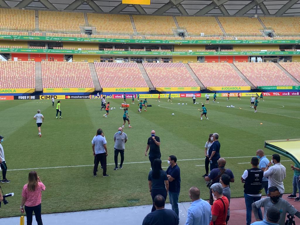 A comitiva da Seleção e o governador Wilson Lima, estiveram presentes para enfatizar as regras do público quanto a presença no estádio. Apenas 70% do público poderá assistir as partidas, e para aqueles que ainda tem a fé de assistir as jogadoras de perto, podem também participar das promoção do sorteio de ingressos, através da Campanha Vacina Premiada do Governo do Estado do Amazonas, por meio do site www.vacinapremiada.am.gov.br.