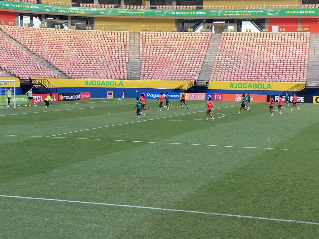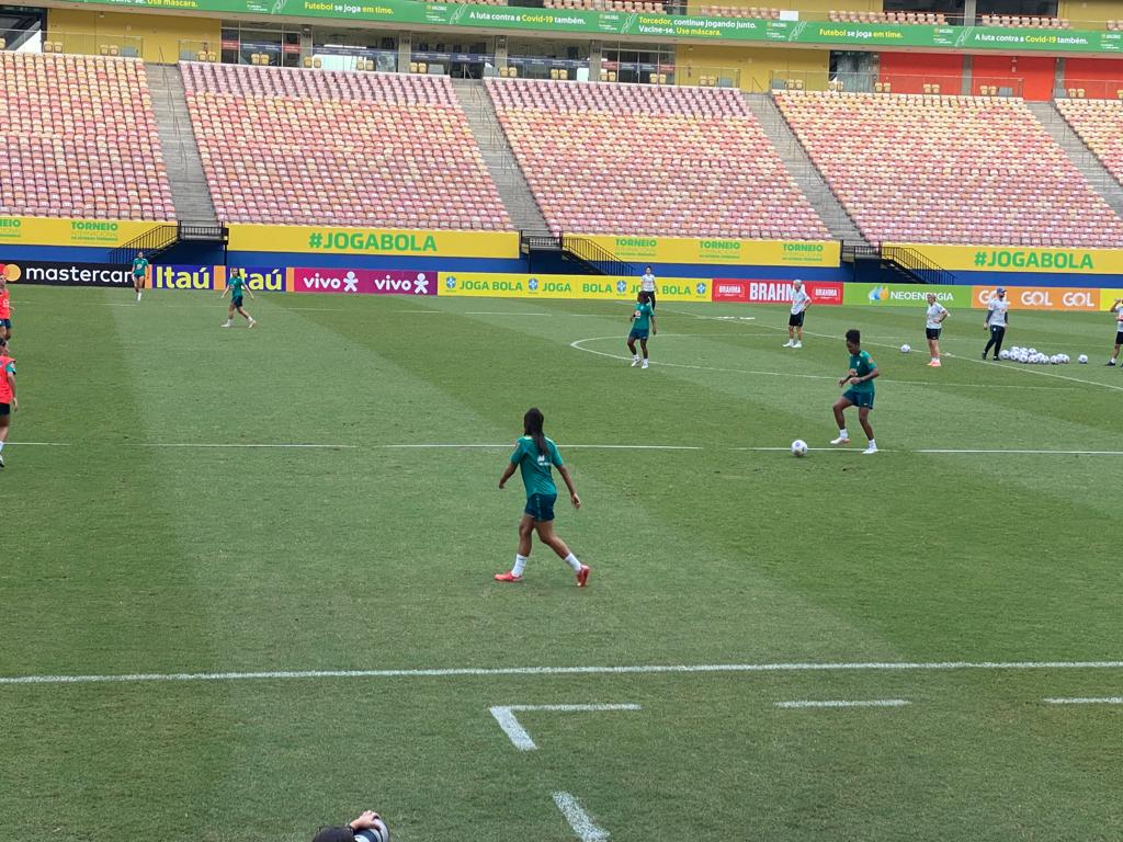 TORNEIO INTERNACIONAL | A Arena da Amazônia, em Manaus, recebeu nesta tarde, a Seleção Brasileira Feminina de Futebol, para a realização do primeiro treino e reconhecimento do campo, para o Torneio Internacional de Futebol Feminino, que ocorre na capital amazonense entre 25 de novembro e 1º de dezembro. Além do time do Brasil, a competição reúne Venezuela, Chile e Índia.
