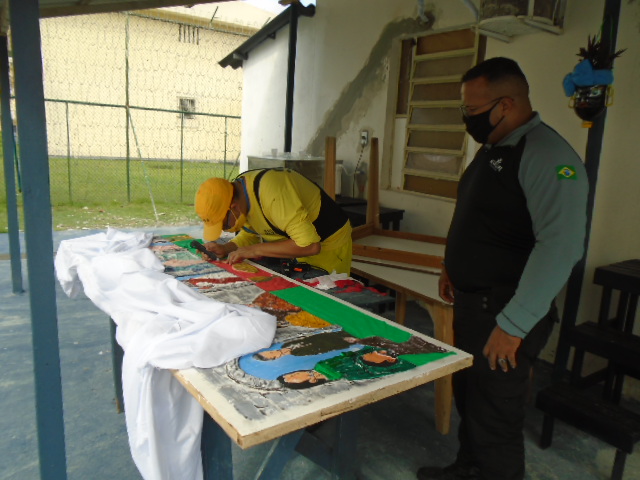Alguns dos quadros pintados pelos apenados do Compaj estão embelezando as paredes da sede da Seap, localizada na avenida Torquato Tapajós, Colônia Terra Nova, zona norte de Manaus. Outros adereços, produzidos em uma única manhã pelas mãos de dois reeducandos do sistema prisional complementam o cenário natalino no prédio.