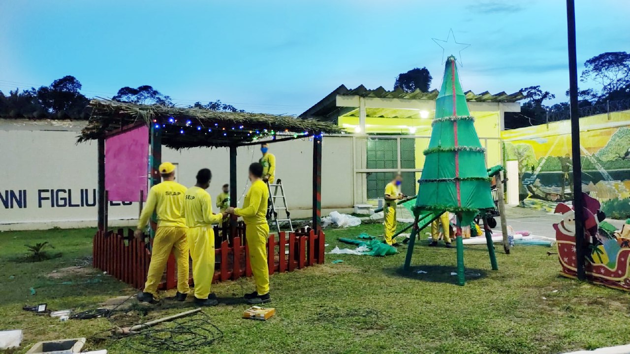 MANAUS – AM | Com o início do mês de dezembro, a Secretaria de Estado de Administração Penitenciária (Seap) também iniciou os trabalhos de ornamentação natalina nas unidades prisionais da capital e do interior do Amazonas. Os estabelecimentos penitenciários estão ganhando uma nova aura com os itens tradicionais que remetem ao período festivo. Tudo é preparado com o zelo e a dedicação dos reeducandos do programa de ressocialização Trabalhando a Liberdade.