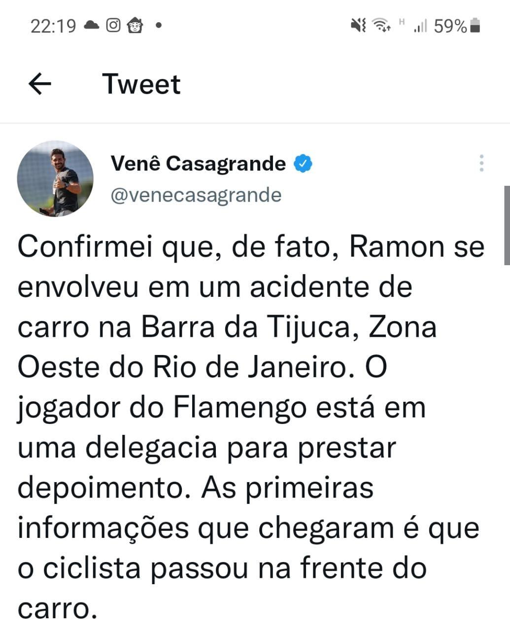 Jogador de futebol do Flamengo se envolve em atropelamento fatal de ciclista no Rio de Janeiro.