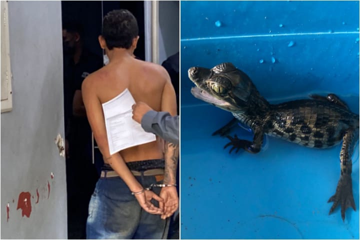 De acordo com a PM, Adriano estava traficando drogas e quando viu a Viatura em patrulhamento, por conta da Operação Amazonas Mais Seguro, correu. Aos ser alcançado, com ele os Policiais encontraram 2 porções grandes de cocaína e outras 16 porções pequenas de cocaína, além de R$ 26,00 reais de dinheiro em espécie. O mesmo também tinha em cárcere um jacaré filhote.