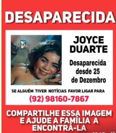 Manaus – AM | Familiares da jovem Joyce Oliveira Duarte, de 14 anos, estão à sua procura. De acordo com informações repassadas, Joyce desapareceu no último dia 25 de dezembro, após sair de casa no Bairro Compensa 1, afirmando que iria em um mercadinho comprar fogos de artifício e foguetinhos.