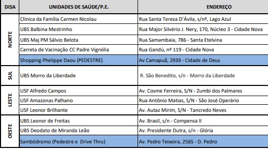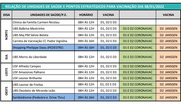 Manaus – AM | Manaus possui 12 pontos de vacinação para atender ao público neste sábado na capital amazonense. Estes pontos atenderão para quem for tomar a dose de reforço, a segunda dose ou até para quem ainda não tomou a primeira dose.