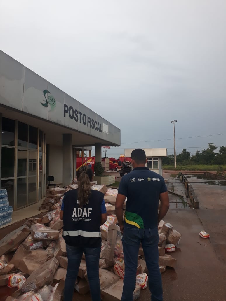 MANAUS | Na noite desta segunda-feira (10), mais de 5 toneladas de frango foram apreendidas, no município de Humaitá (a 590 quilômetros de Manaus), no momento em que estava sendo transportado sem nota fiscal e sem refrigeração, com grave risco à saúde. A apreensão foi feita pelos da Agência de Defesa Agropecuária e Florestal do Estado do Amazonas (Adaf)