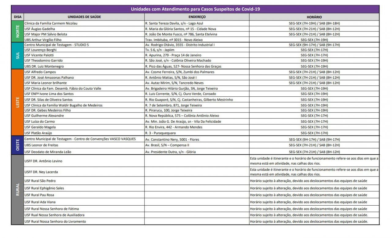 Manaus | Pacientes com suspeita de Covid-19, apresentando sintomas, devem procurar as Unidades Básicas de Saúde (UBS).