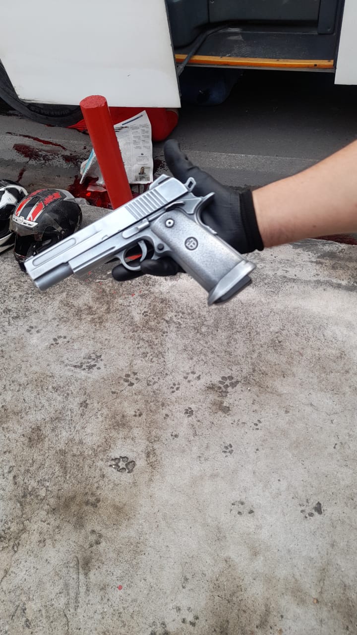 Eles estavam realizando um assalto, quando foram surpreendidos por uma rota de empresa do Distrito Industrial, colidindo com o veículo. Os suspeitos foram arrastados pelo veículo, um deles indo para debaixo , que não teve o nome identificado, foi para debaixo da roda dianteira e morreu no local, já o outro ficou gravemente ferido e foi encaminhado para uma unidade hospitalar.