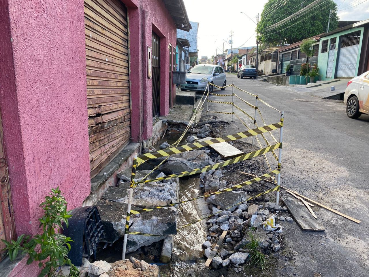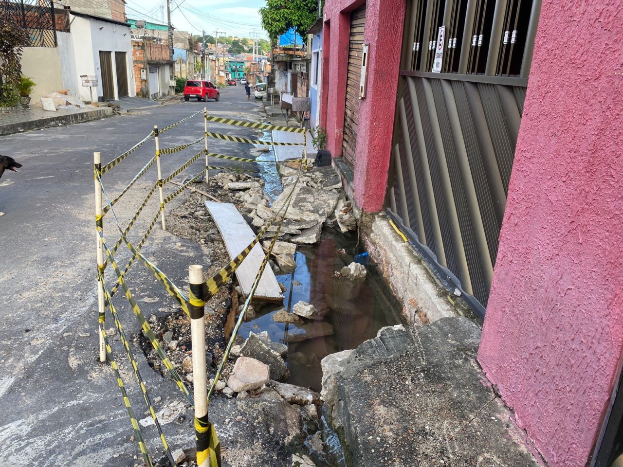 MANAUS-AM | Uma cratera aberta em frente a um imóvel, localizado na Rua 44-C, bairro Amazonino Mendes, mais conhecido como Mutirão, preocupa os moradores de duas residências devido à possibilidade de comprometimento das estruturas.