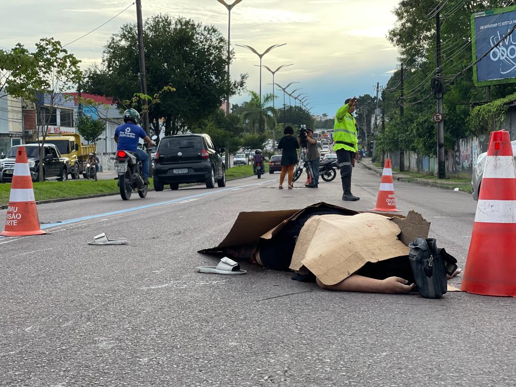 Mulher morre após ser atropelada ao atravessar a avenida Max Teixeira em Manaus.