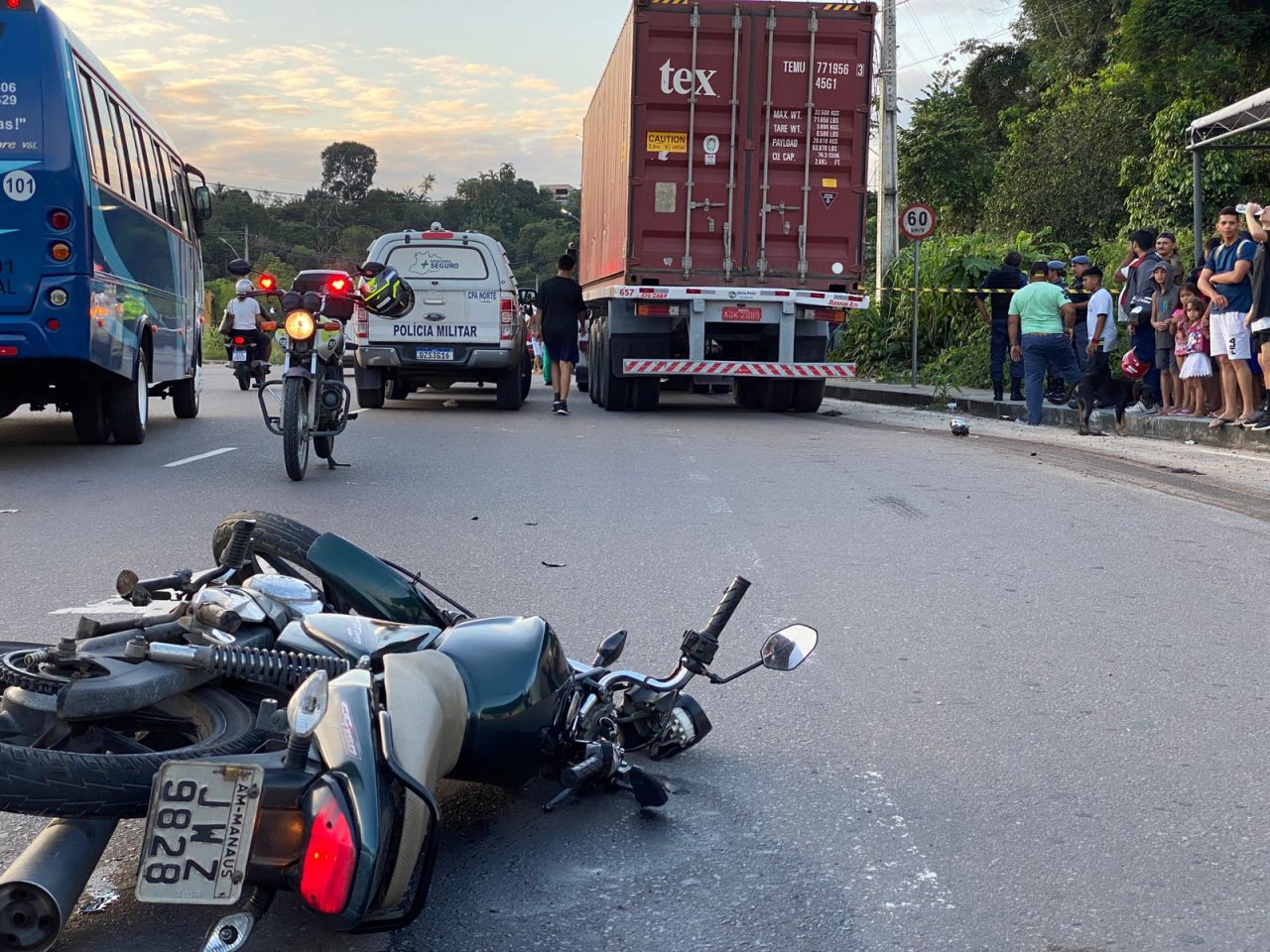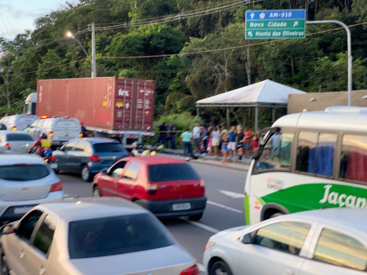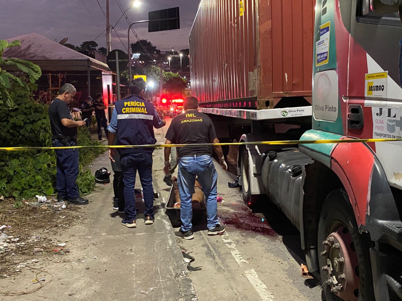 Rayelly estava em uma moto e o marido estava em outra, indo deixar o veículo para o proprietário na barreira, no bairro Santa Etelvina, que dá acesso aos municípios do interior pelas rodovias AM-010 e BR-174, quando foi surpreendida pela carreta, que a saiu arrastando pela pista, e ela veio a óbito.