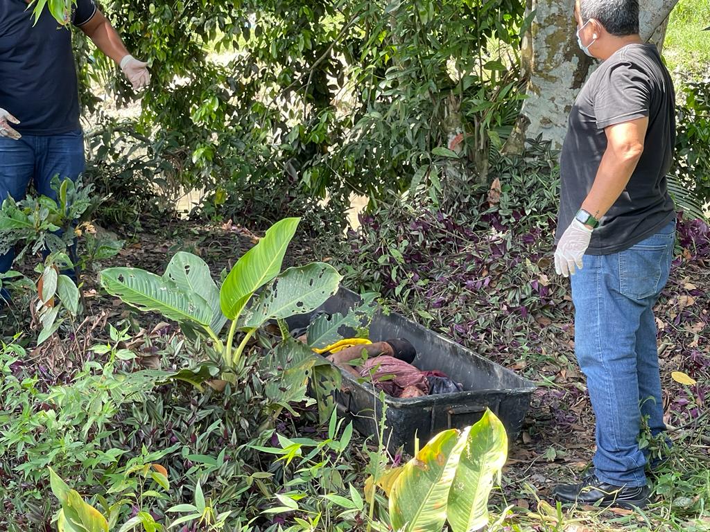 O corpo foi encontrado com um saco amarrado na cabeça.