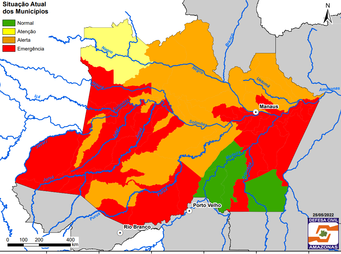 A calha do Solimões se encontra em estado de alerta desde o dia 04 de abril, conforme a Defesa Civil do Amazonas, por meio de Monitoramento e Alerta.