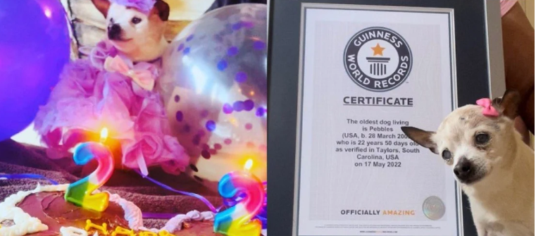 Taylor Bobby e Julie Gregory, da Carolina do Sul (EUA), e tutores de Pebbles, decidiram inscrever a cadela depois de verem as notícias sobre TobyKeith, um chihuahua de 21 anos que era o detentor da marca desde abril deste ano.