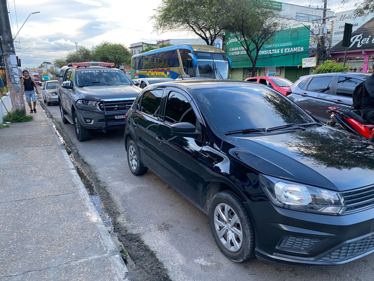 Os quatro indivíduos estavam em um gol preto de placa PHT-9A43, que forma presos na avenida Autaz Mirim. Duas vítimas já foram ao 14° DIP.