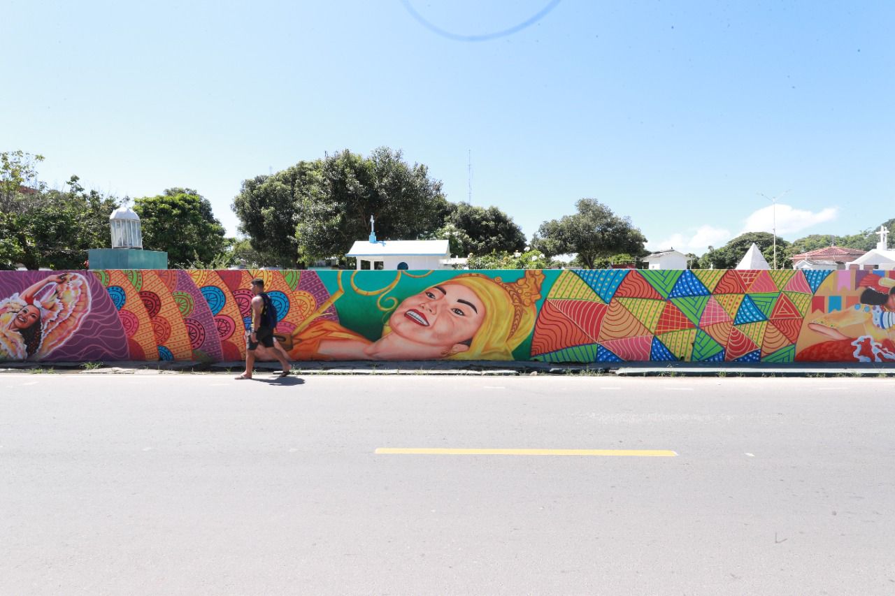 A principal obra está na fachada do Centro Cultura de Parintins – Bumbódromo, que se transformou em um mural gigante, com quase 800 metros quadrados. Intitulada “Vitória da Cultura Popular”, a pintura é assinada pela dupla de artistas parintinenses Curumiz, composta por Alziney Pereira e Kemerson Freitas.