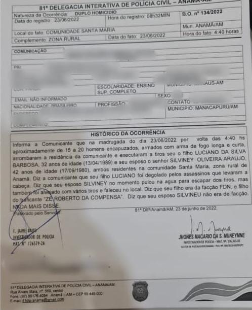 Segundo o Boletim de Ocorrência registrado pela mãe de L7, cerca de 15 a 20 homens encapuzados e armados, entraram na residência e realizaram o crime de forma brutal. Luciano foi degolado e teve a sua cabeça levada pelos criminosos. Silviney pulou na água para escapar dos tiros, contudo, foi alvejado e morreu no local.