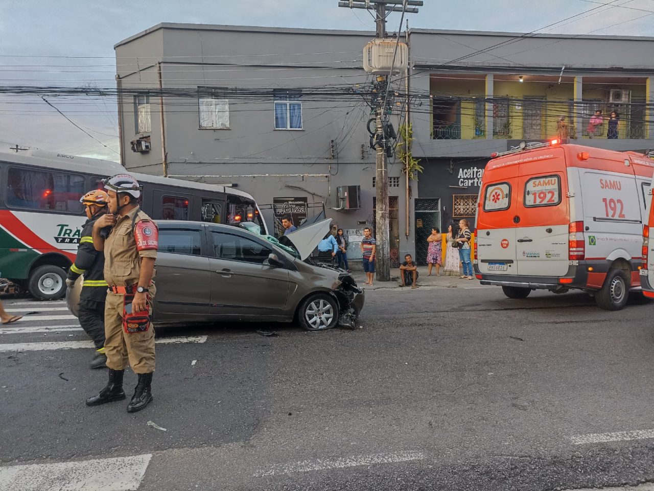 Acidente entre carro de aplicativo e micro-ônibus no Centro de Manaus deixa três feridos
