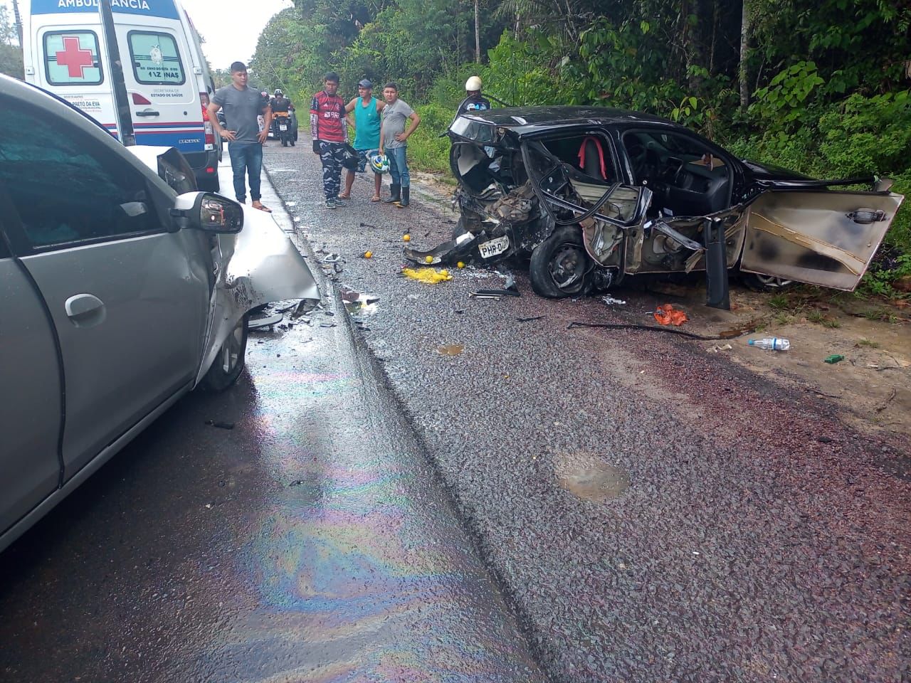 Manaus – AM | Na manhã desta sexta-feira (22), um acidente de trânsito envolvendo dois carros deixaram três pessoas feridas no quilômetro 28 da estrada AM 010. Os veículos estavam em caminhos oposto quando colidiram frontalmente e ficaram destruídos.