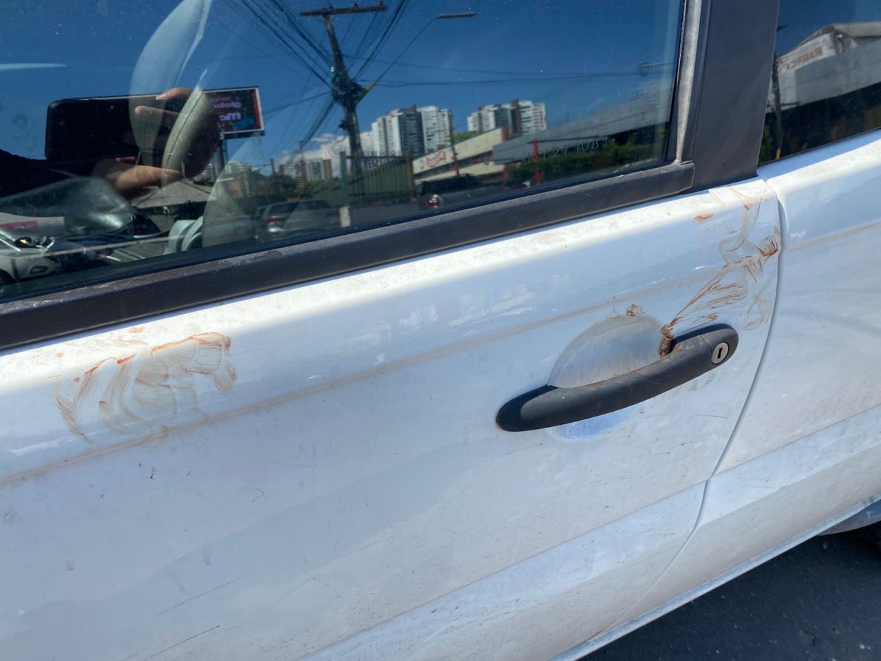 No carro, é possível ver as marcas de sangue, possivelmente da vítima. Veja:
