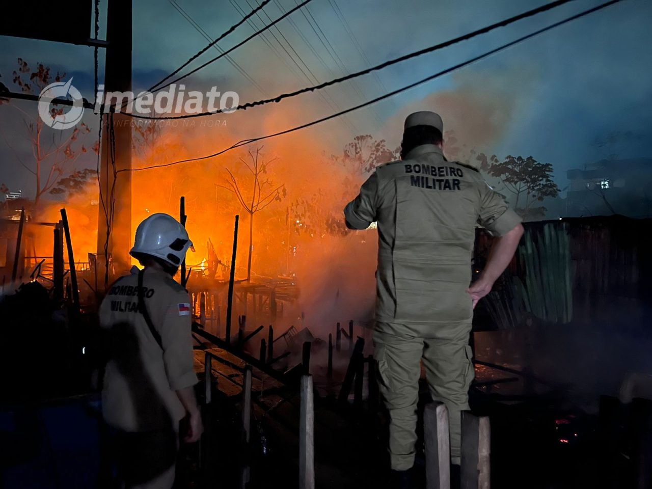 MANAUS-AM | Um incêndio de grandes proporções deixou várias casas destruídas e assustou moradores, na noite desta terça-feira (26), na rua Cachoeira, no bairro São Jorge, zona Oeste de Manaus.