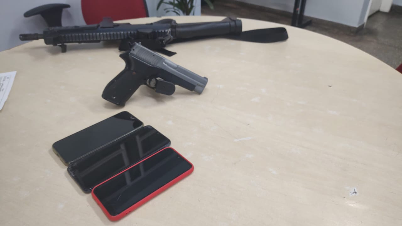 Segundo o sargento Seabra, da 28°, o menor estava pilotando a moto durante a abordagem policial enquanto Edney estava com a arma falsa. Foram apreendidos três celulares e o simulacro.