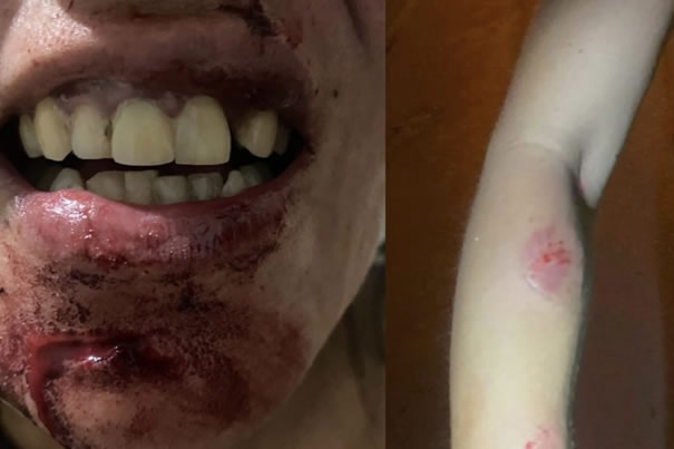 De acordo com informações da polícia, para atacar a mulher, o suspeito arrombou a porta da casa dela e a desferiu socos, golpes de martelo e, também, a mordeu. Fotos divulgadas pela polícia mostram que a mulher ficou com a boca machucada e teve cortes no punho e no queixo, que foi necessário levar pontos.