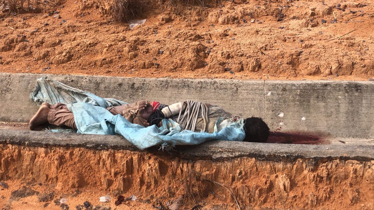 O corpo estava amarrado com uma corda e uma lona em cima, com as mãos amarradas para trás com um fio elétrico. Um tecido vermelho foi utilizado para amordaçar a boca. O homem também foi encontrado com setes disparos de arma de fogo, na cabeça e nas costas.