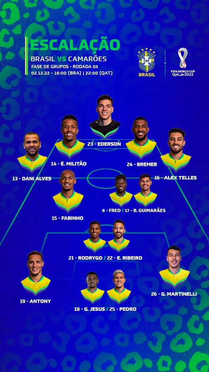 MUNDO| O técnico Tite já divulgou boa parte da escalação titular contra Camarões. Apesar do treino fechado realizado nesta quarta-feira (30), o treinador autorizou a assessoria de comunicação da Confederação Brasileira de Futebol (CBF) a compartilhar o time base que encara a seleção africana no encerramento da fase de grupos da Copa do Mundo do Catar. Ele será composto inteiramente por reservas.