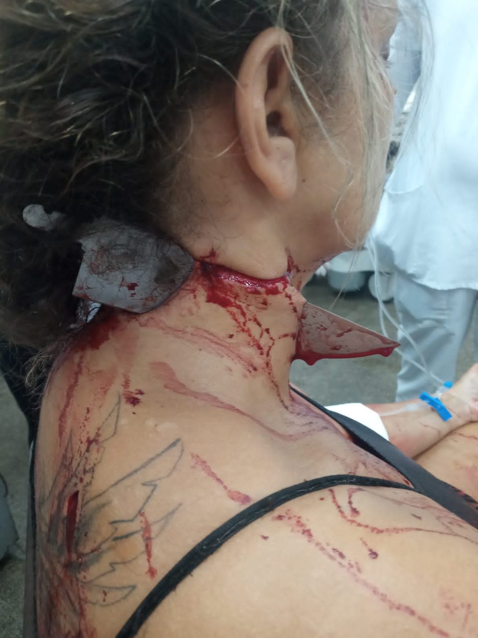 Mulher tem faca cravada no pescoço e ferimento próximo ao coração pelo ex-marido