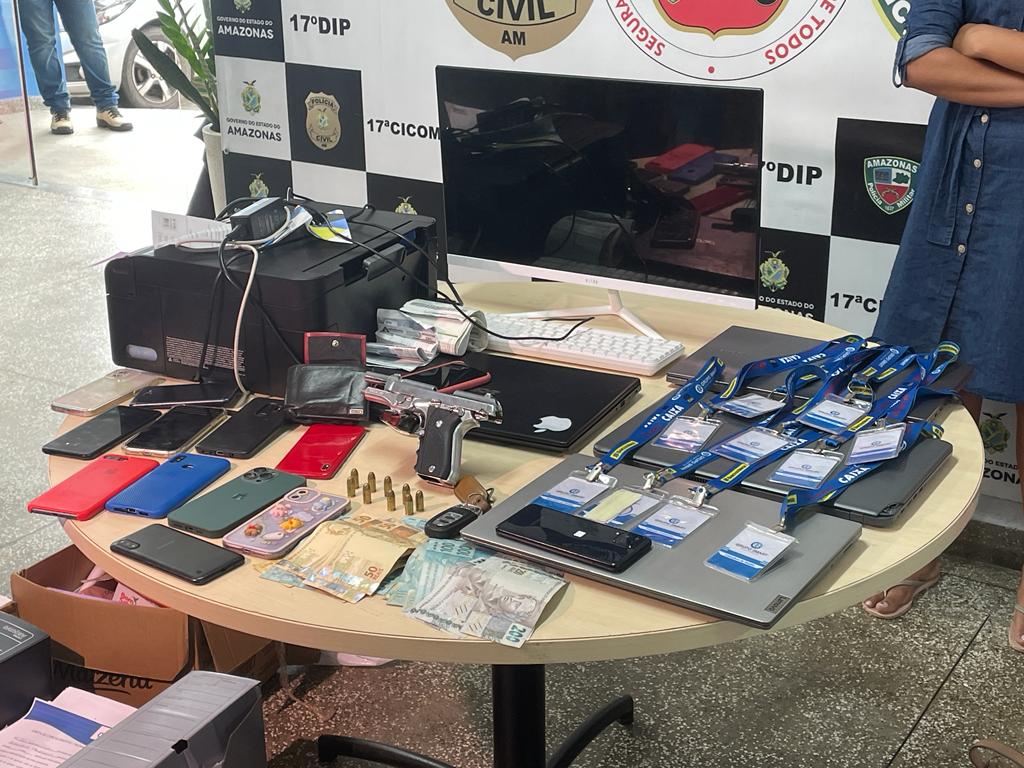 MANAUS-AM | Emerson Souza Mota, 23, e mais nove pessoas foram detidas em um escritório na rua Gergelim, bairro Chapada, zona Centro Sul de Manaus, nesta quinta-feira (05) suspeitas de aplicarem golpes de estelionato com vendas imóveis.