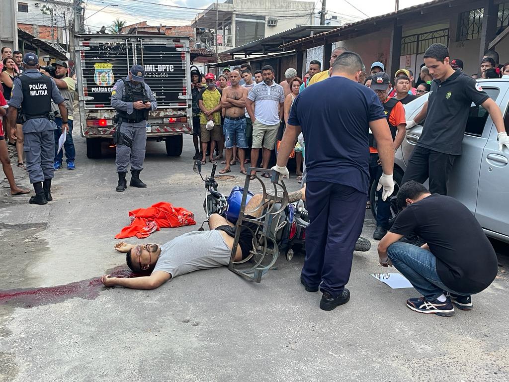 Manaus (AM) – Um homem identificado como Leonardo Castro Mendonça, 27 anos, foi assassinado com vários tiros na cabeça na tarde desta quarta-feira (18), por um homem que estava em um veículo Voyage cinza escuro , ele disparou contra o motoboy Leonardo quando ele fazia uma entrega , na travessa Amazonas, conjunto Vila Amazonas, bairro Adrianópolis, zona Centro Sul de Manaus.