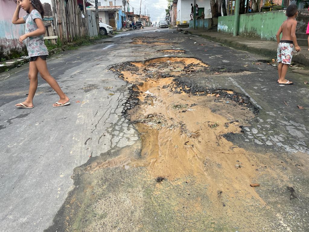 Moradores denunciam abandono de rua esburacada no bairro Jorge Teixeira, em Manaus.