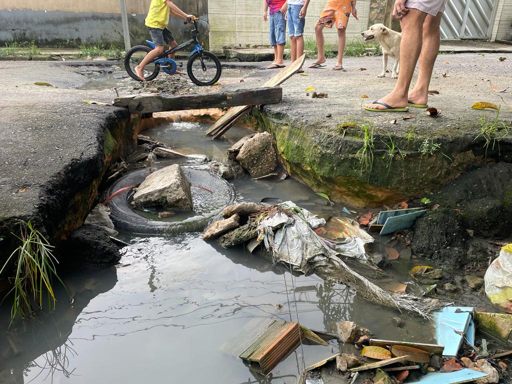 CIDADE | Moradores pedem providências das autoridades após cratera abrir no meio da rua Venezuela, bairro Parque das Nações, zona Norte de Manaus.