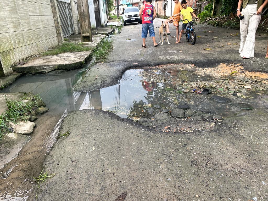 De acordo com os moradores, há mais de 7 anos não é feito uma manutenção na via. Acidentes já aconteceram no local com carros que caíram dentro dessa cratera. Os moradores também colocaram pedaços de madeira, para sinalizar o local. Além da cratera, a falta de saneamento básico também toma conta do local.