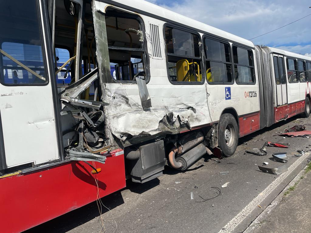 Pelo menos seis pessoas ficaram feridas, sendo três no ônibus articulado e três no micro-ônibus.