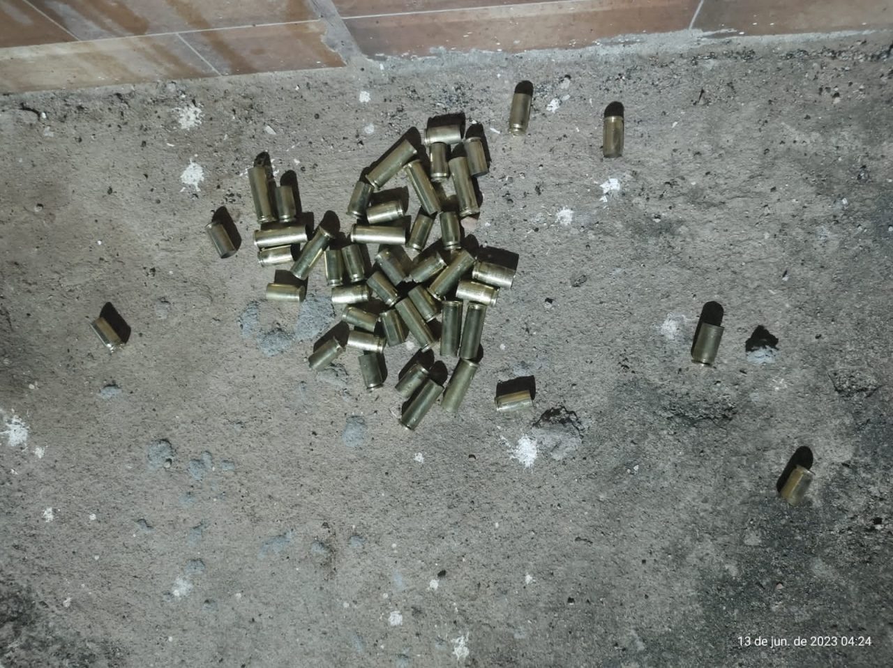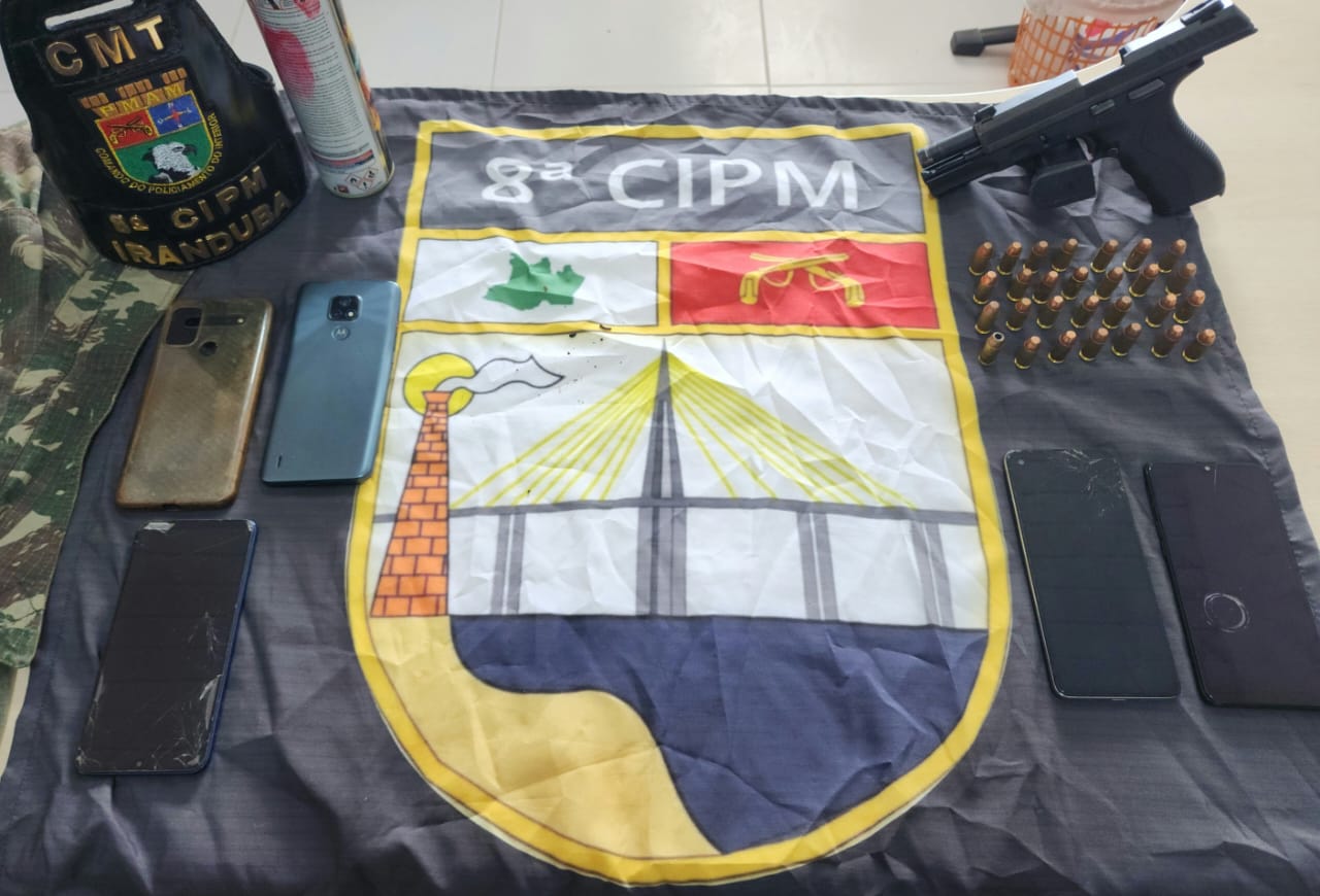 Durante a abordagem, foi encontrado com o homem uma arma de fogo, 13 munições no seu carregador intactas, e no interior de uma bolsa preta que o mesmo transportava foi encontrado mais 15 munições intactas de mesmo calibre, um spray vermelho e um telefone da marca Motorola, sendo que o mesmo tinha um outro telefone de marca Motorola que tentou destruir.