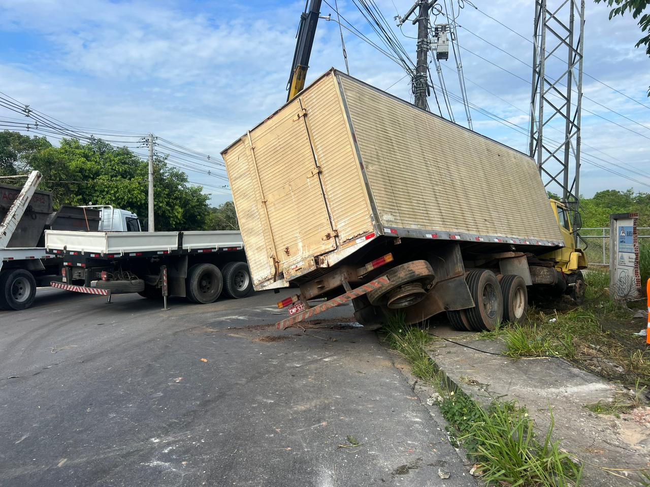 Manaus – AM | Nas primeiras horas da manhã deste sábado (01), um caminhão de carga acabou capotando na Avenida dos Oitis, Distrito Industrial 2, zona leste de Manaus.