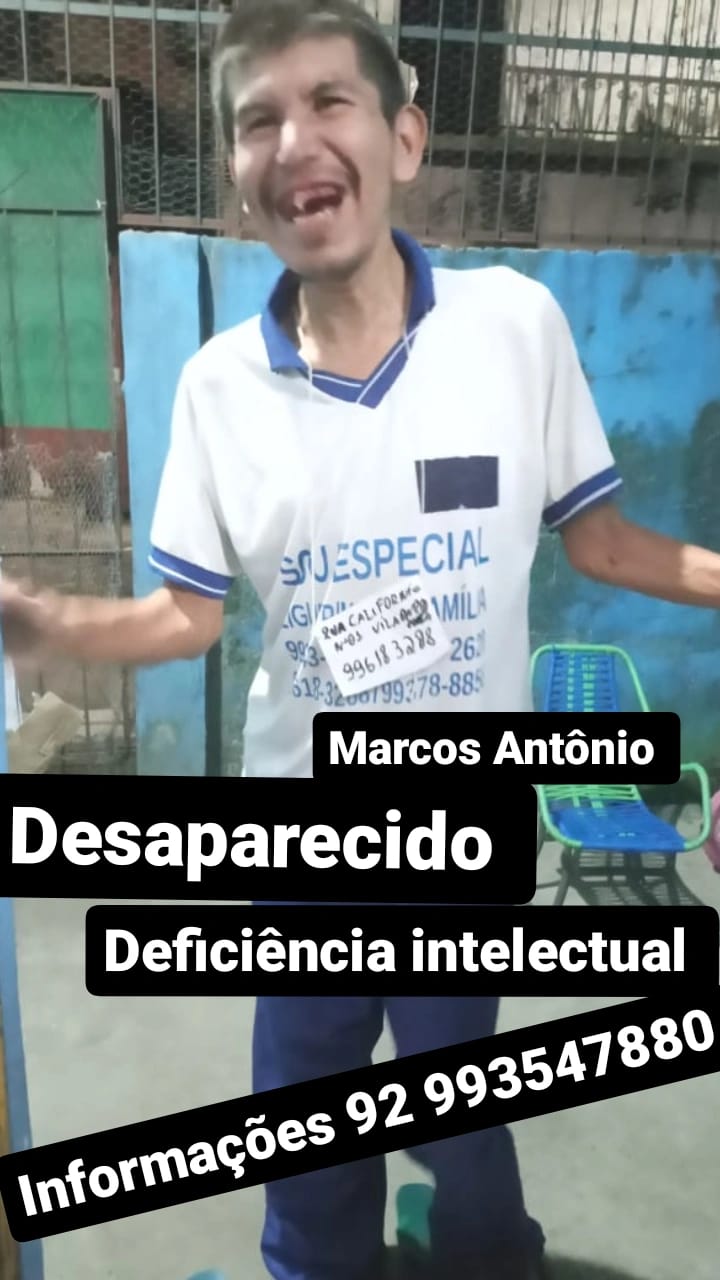 Ainda de acordo com a irmã, o jovem tem deficiência intelectual. Quem souber informações sobre Antônio pode estar entrando em contato com os familiares através do número (92) 99354-7880.