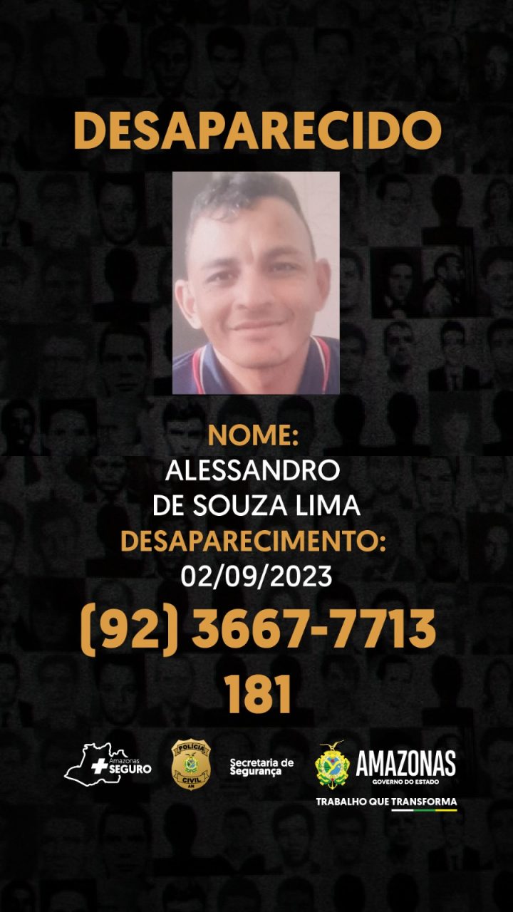 Manaus-Am | A Polícia Civil do Amazonas (PC-AM), por meio da Delegacia Especializada em Ordem Política e Social (Deops), busca informações sobre o paradeiro de Alessandro de Souza Lima, 39, que desapareceu no sábado (02/09), no bairro Compensa, zona oeste.