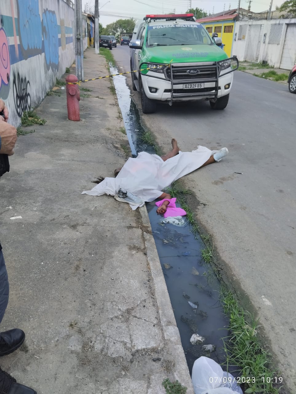 Manaus – AM| Uma travestir não identificada, foi morta na manhã desta quinta-feira (07), na rua Goiás, no bairro Cidade de Deus, na zona Norte da capital amazonense. A vítima caiu na sarjeta entre a calçada e a rua.