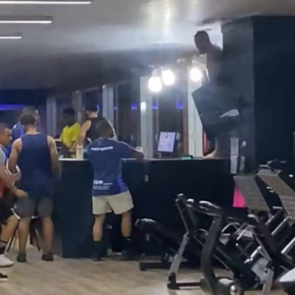 Vídeos que circulam nas redes sociais mostram o momento em que o indivíduo subiu em um balcão na academia, destruindo uma televisão, luminárias e outros objetos valiosos. Antes disso, ele já havia invadido um escritório e causado danos materiais.