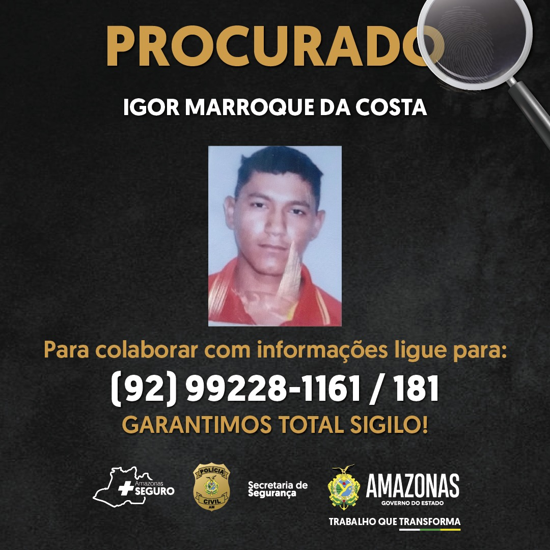 A PC-AM solicita a quem tiver informações acerca da localização de Igor, que entre em contato pelo número (92) 99228-1161, disque-denúncia do 9° DIP, ou pelo 181, da Secretaria de Estado de Segurança Pública (SSP-AM).