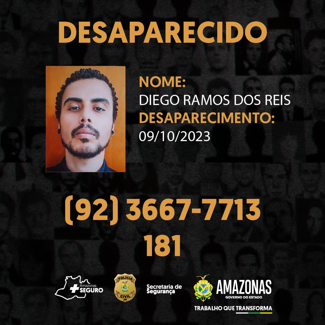 A PC-AM solicita a quem saiba a localização de Diego, que as informações sejam repassadas por meio do número 92 3667-771, disque-denúncia da Deops, bem como pelo 181, da Secretaria de Estado de Segurança Pública do Amazonas (SSP-AM).