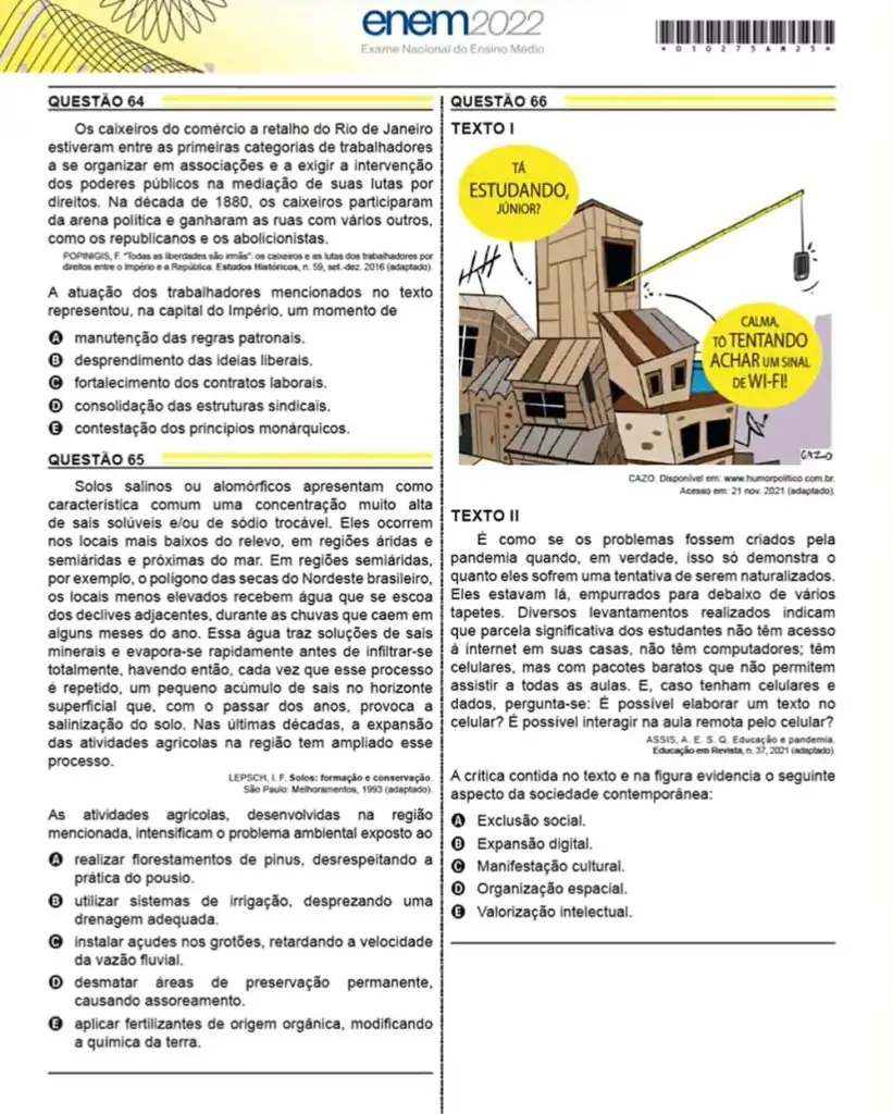 - Como era: Até 2022, as provas tinham apenas a capa do caderno de questões colorida.