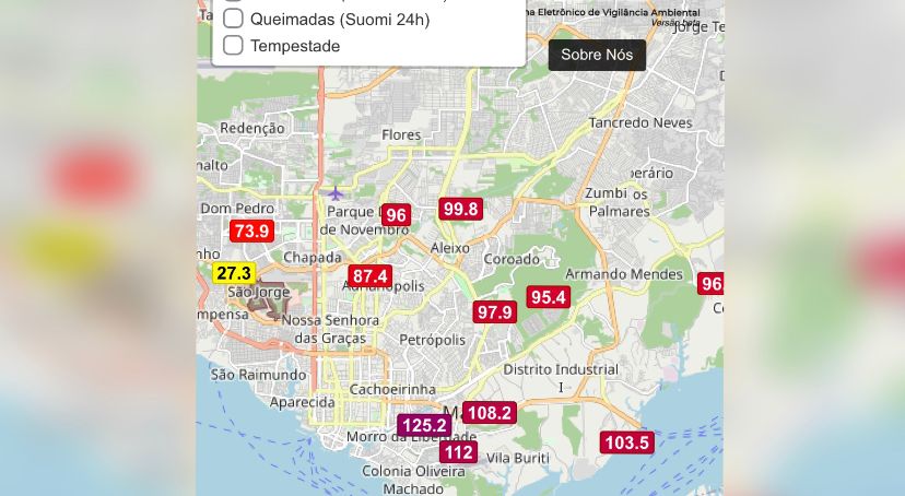 O APP selva, da Universidade do Estado do Amazonas (UEA), apontou que vários bairros de Manaus estão com a qualidade do ar no nível péssimo.