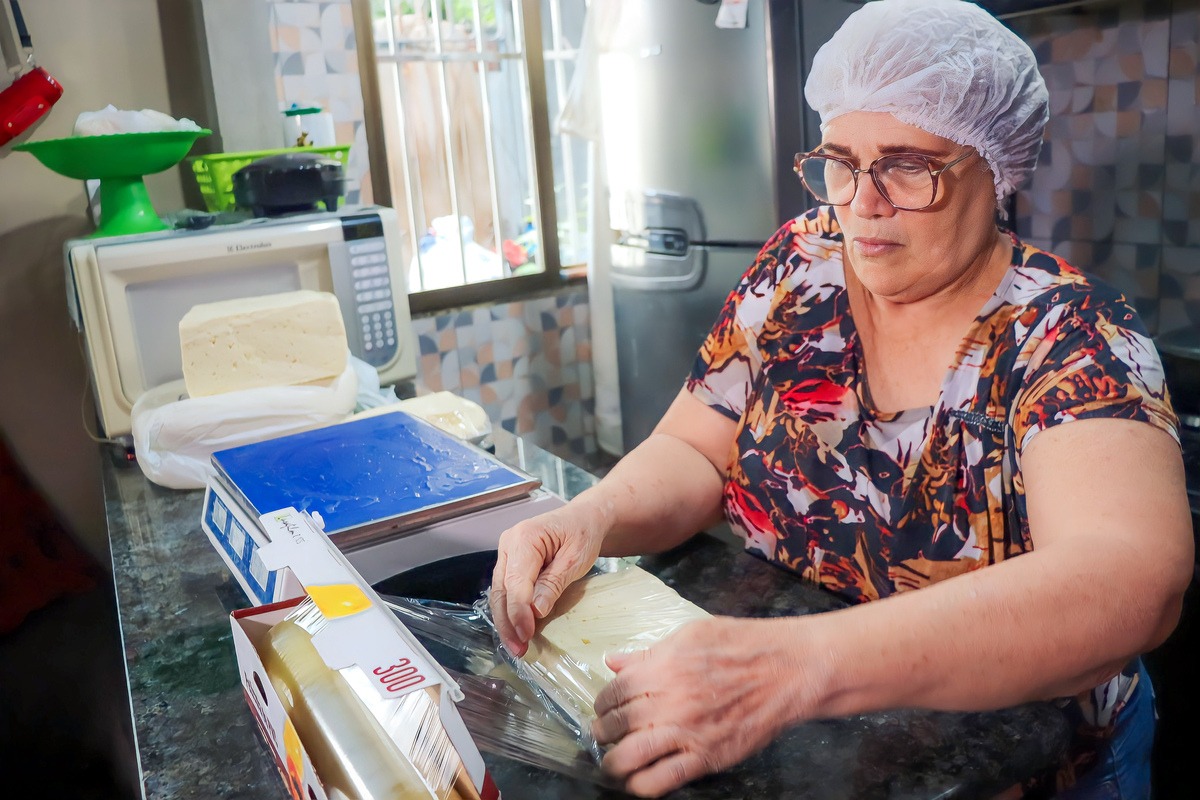 O empreendedorismo feminino também ajudou Cristina da Silva, de 62 anos, a ter uma renda. Tentando empreender há mais de 5 anos, no início de 2023, ela se tornou fornecedora de queijo para comércios locais e para o interior.